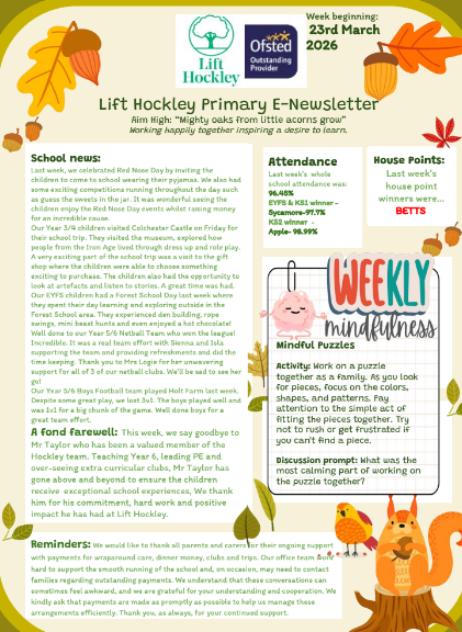 “Working happily together inspiring a desire to learn” underpins all that we do and reflects the beliefs of all pupils and staff here at our school. Collectively we build our pupils’ aspirations and give them the skills and learning experiences to achieve them.As our vision makes clear, our school is a space for aspirations. We know, however, that to help realise these aspirations, our school’s focus must be rooted firmly in our children’s success in the present. Here at Lift Hockley, we take inspiration for this task from our natural setting. Just like the woodland surrounding us, our school is a communal space. We share it, we grow within it and, most importantly, we nurture it. Our school has places to sit and feel part of something, places to shelter and places from which to admire the beauty of everything that has grown within it.